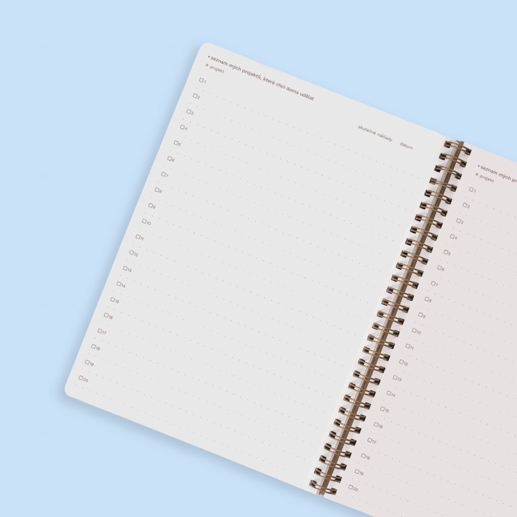 - Prostor na 40 domácích projektů: Detailní rozpis, plán, finance a poznámky k provedení.