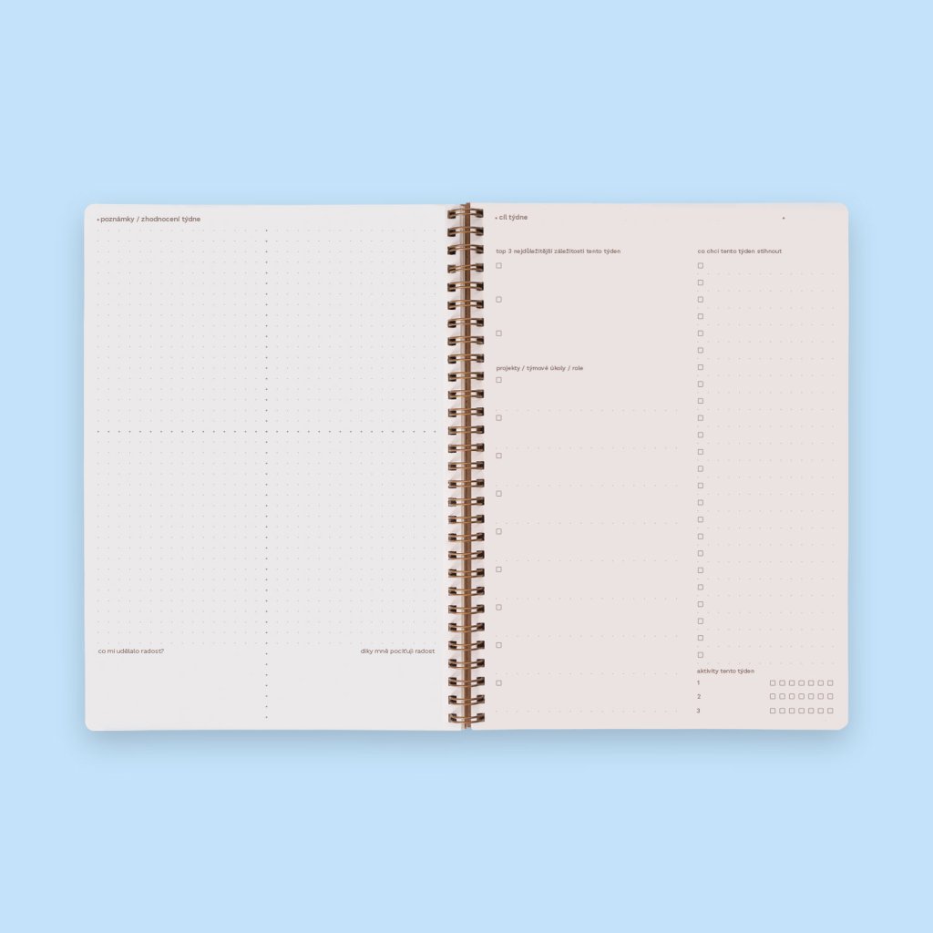 Samozřejmě není v lidských silách obsáhnout potřeby každého jednotlivce. Někomu nevyhovuje rozměr, jinému třeba kroužková vazba. Chápeme to a i podobné zpětné vazby vedeme v patrnosti, abychom na ně v budoucnu mohli reagovat. A pokud nenajdete svůj oblíbený systém v jednom produktu, můžete prozkoumat i další z našich nástrojů, kterými se snažíme pokrýt právě co nejširší spektrum potřeb.